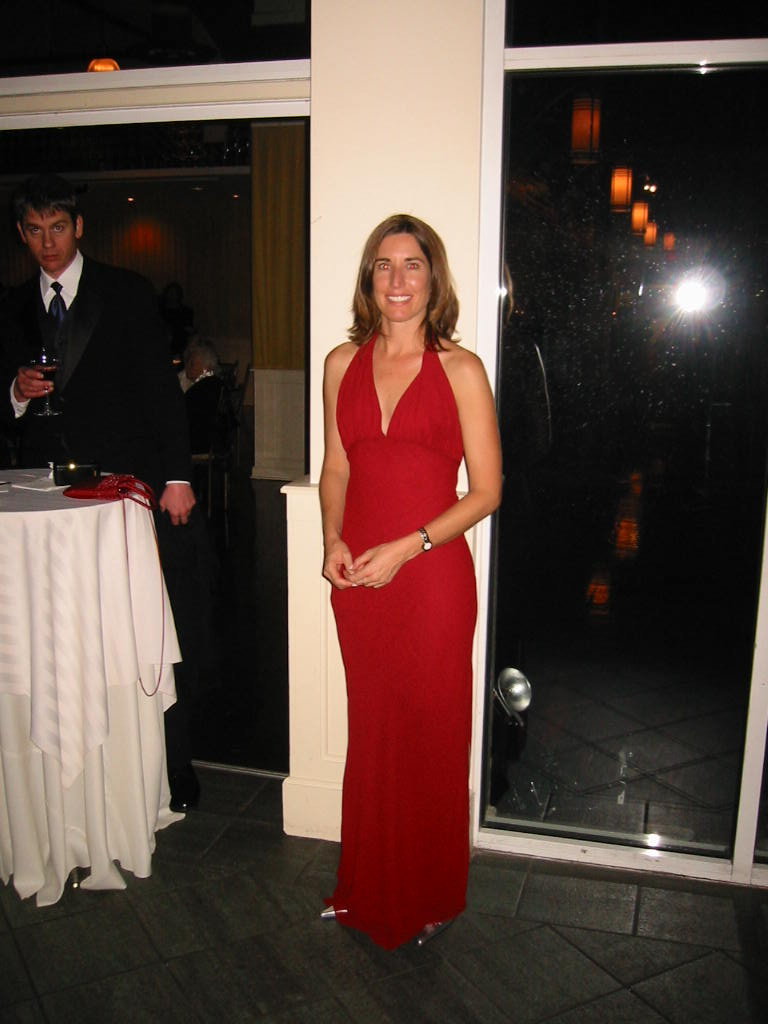 Ann in red dress, with pointy shoes. Youza! |